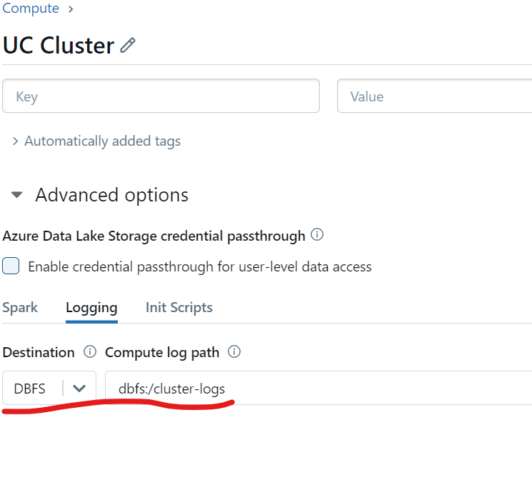 2. Logs can be captured to a DBFS location in order to keep it for a longer time as below,