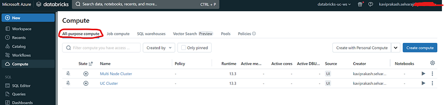 - All purpose Cluster — This cluster is used to run workloads using interactive notebooks. The compute can be created, terminated and restarted using Databricks UI or CLI or via REST API.More suitable for Development workload and can be shared across many developers.